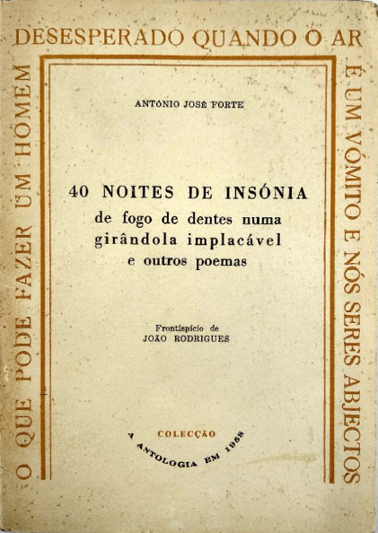 António José Forte (1931-1988) é uma aparição poética de rara qualidade nos horizontes ideológicos e culturais do Portugal do pós-guerra. Não se notabilizou pela extensão da obra escrita – e muito menos vasta foi a sua produção publicada. Entre outras coisas, até lhe aconteceu ter a sua escrita cercada por um “mimo estilístico” que esteve muito em moda no tempo de Salazar: a censura – actividade de tão zelosos prosélitos que conseguiu manter-se intocada na famosa primavera marcelista e anunciava-se incólume no “programa democrático” do Spínola pós 25 de Abril.