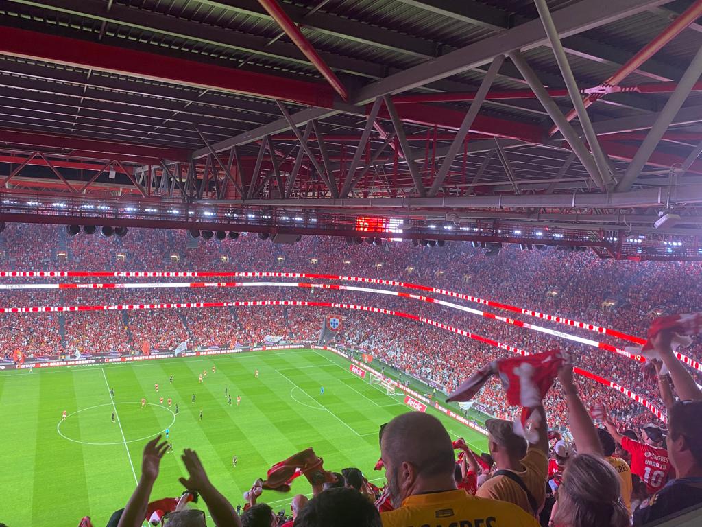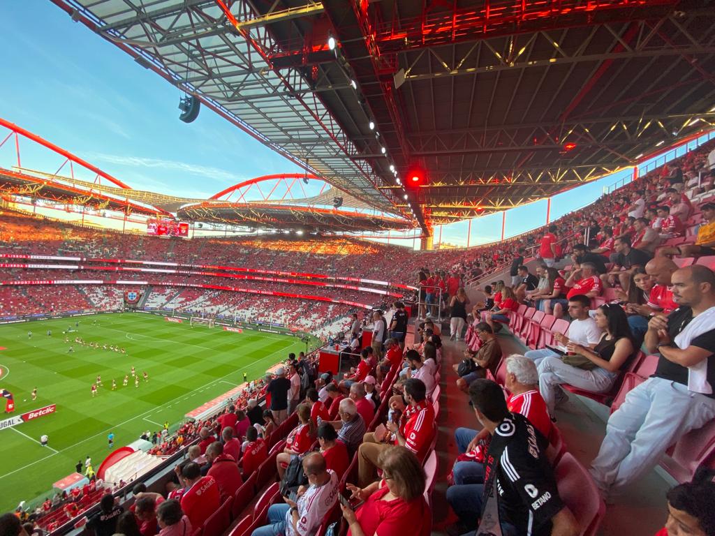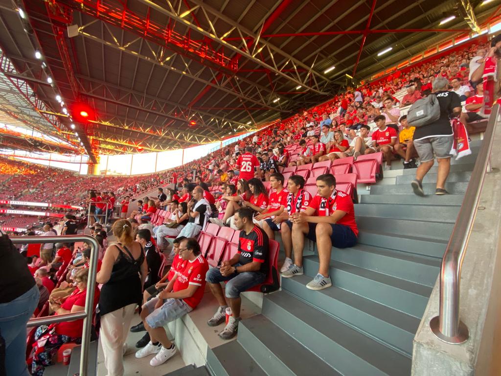 E pensar que esta tarde estive a revelar as promiscuidades do Dr. Filipe Froes e mais as suas 324 colaborações com farmacêuticas desde 2013 e os 453.635,37 euros arrecadados, fora eventuais prebendas não declaradas no Portal da Transparência do Infarmed… e eis-me aqui, agora, no Estádio da Luz, para assistir ao primeiro jogo em casa do Benfica no campeonato de futebol da época da graça de 2023 e 2024. Numa varanda com boa vista.