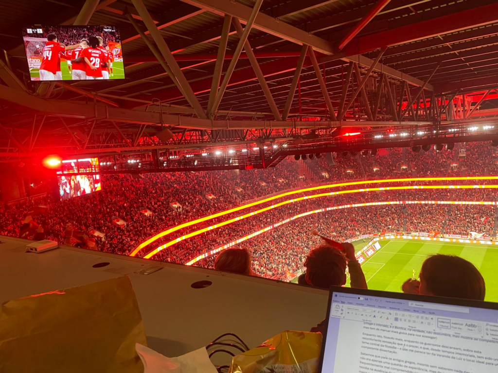 No coração de cada adepto, sinto agora nestes benfiquistas, um pouco mais de 60 mil aqui no estádio, reside um ethos semelhante ao dos filósofos: o prazer supremo destas últimas semanas, e de hoje em particular, esteve inextricavelmente ligado à paciência, sobretudo com o alemão, ao esforço, à espera e, muitas vezes, à dor de suportar derrotas e empates. Não é o sabor mais ou menos fácil das vitórias sucessivas com o Bruno Lage que agora cativa; é o momento glorioso que chega após uma sequência de desafios superados.
