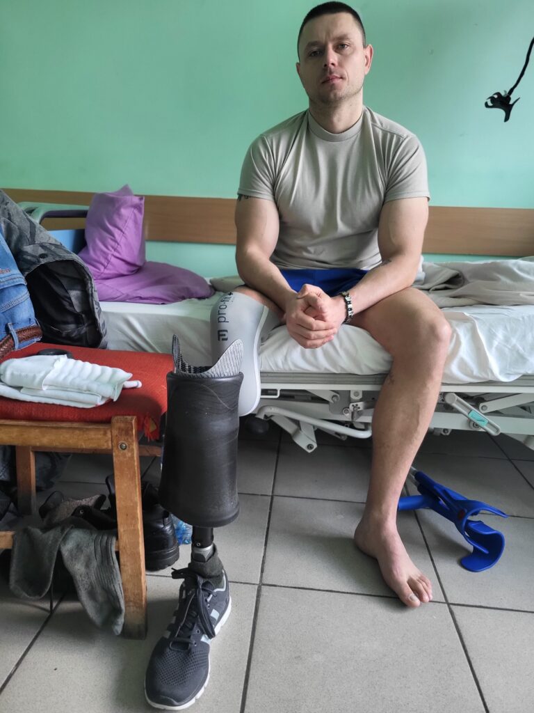 Ao todo, já passou nove meses em vários hospitais. No hospital militar de Lviv, foi-lhe colocada uma prótese à qual se está a habituar lentamente. Está desejoso de continuar no exército.