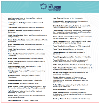 María Corina Machado foi uma das signatárias da Carta de Madrid, promovida pelo Vox (Espanha).