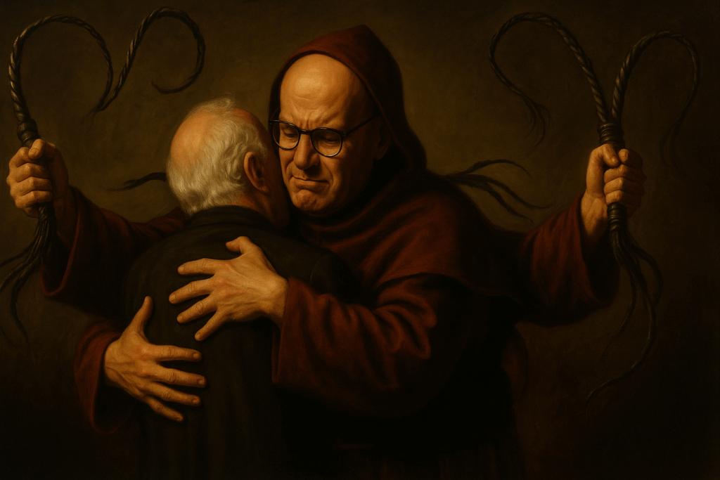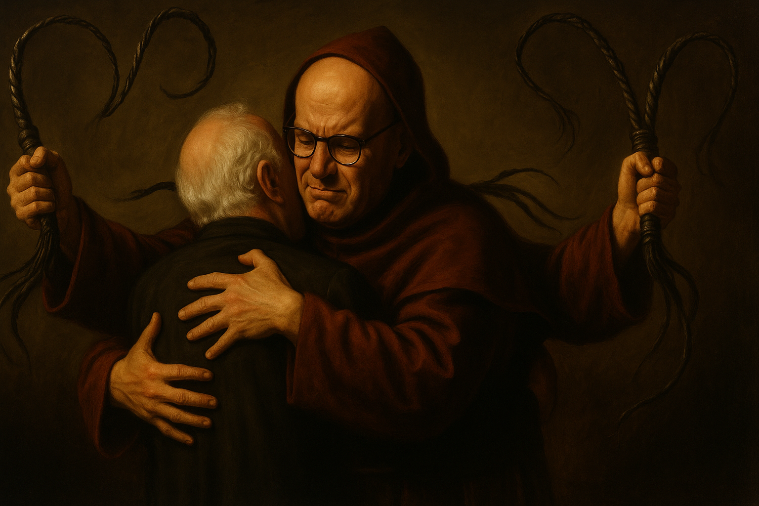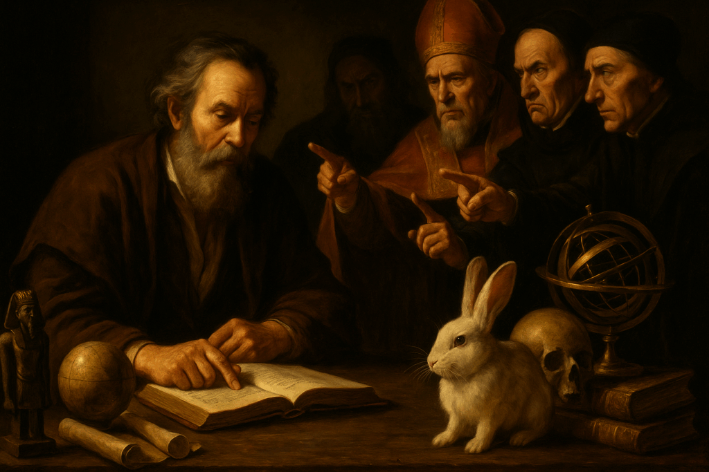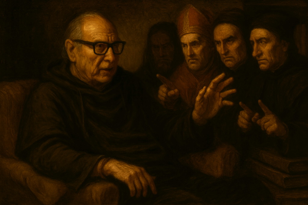Meditemos, pois, sobre a vossa época, aparentemente imunizada contra teofanias e idolatrias, mas infelizmente não contra confusões antigas: a ciência transformada em catecismo, o desacordo tratado como heresia, a opinião divergente convertida em acto punível não é modernidade — é hierocracia. Muda apenas o archote. Outrora queimava-se em fogueira pública; agora queima-se em processo disciplinar — mais asseado, sem fumo e com tempo para almoços tranquilos entre perícias.