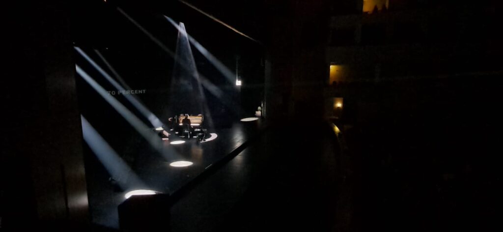 Rui Massena preparou um espectáculo para nos falar de si. Uma história narrada entre sustenidos e bemóis, encrustada numa luz de intimidade muito aconchegante. Impressionou-me essa capacidade de transformar um espaço enorme numa salinha onde nos sentamos à sua volta.