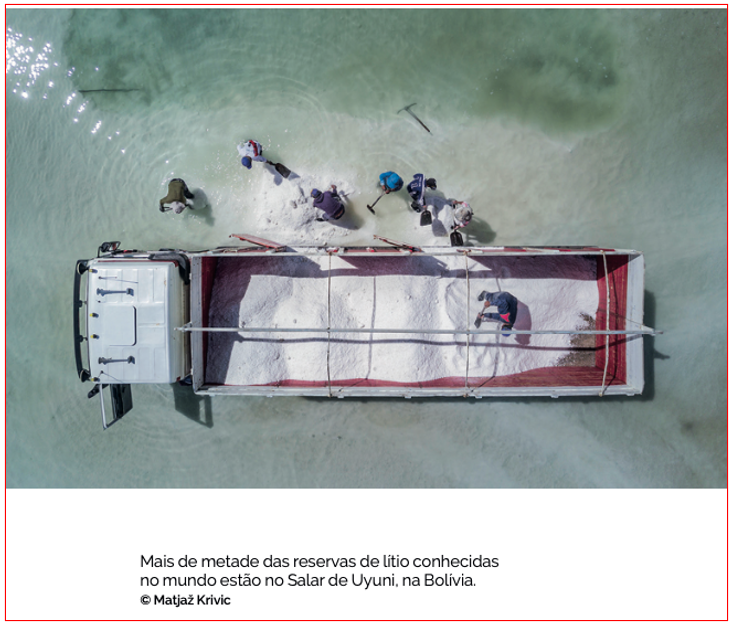 “Salar de Uyuni, no topo dos Andes. O maior salar do mundo – e um dos lugares mais mágicos que já vi, lindo! Perto de 70% das reservas mundiais de lítio estão ali. Aquele lugar está a alimentar os nossos veículos elétricos e praticamente todos os nossos dispositivos eletrónicos, agora e nas próximas décadas! Então, vamos lá: vamos fazer uma história sobre o lítio. Que dizes? Vamos abordá-lo como deve ser, em profundidade, desde a fase da extração até à fabricação dos carros elétricos.”