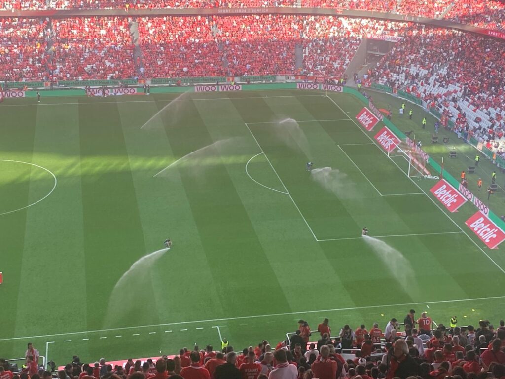 Eu cumpri a minha parte do nosso trato, com visita ao Estádio da Luz, credencial de imprensa e esta crónica preguiçosa. Foi pena o Arouca ter ido de férias antes do jogo. Daqui de cima, confirma-se que o Benfica tem alguns grandes jogadores. Dou graças a Deus por não ser cego e me ter libertado do fanatismo clubista. Até gostava de ver o João Neves no Sporting mas felizmente isso é impossível. Hoje houve algumas jogadas bonitas, nenhuma como o vôo da águia. Sonho com o dia em que haverá leões à solta no fosso do nosso estádio. Para já, só no relvado.