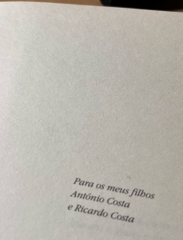 Intrigado com a descrição e conteúdo da obra, decidi, 30 anos depois, procurar este livro. E ainda bem que o fiz, pois acabei por descobrir que até estava dedicado aos dois filhos do autor: António Costa e Ricardo Costa – sim, o actual primeiro-ministro e o irmão, director-geral de Informação do Grupo Impresa (que incluiu, entre outros órgãos de Comunicação Social, a televisão SIC e o semanário Expresso).