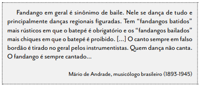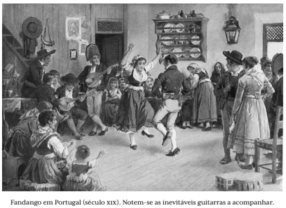 De algumas, conhecemos as características. O fandango, por exemplo, era um tipo de dança popular ibérica marcado por rodopios e saltinhos, acompanhado por guitarra e castanholas.