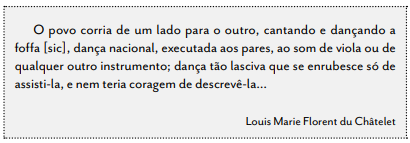Ora, as danças e as músicas que compunham esse panorama têm nome: era a fofa e o oitavado, as cheganças e o fandango, o cumbé e o batoque, a charamba e o arrepia, a comporta e o lundum.