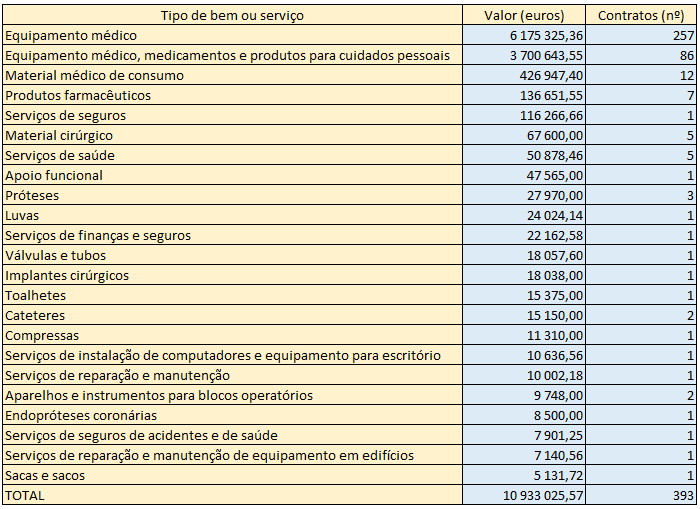 Com preço contratual acima de 500.000 euros, foram publicados 19 contratos, dos quais 13 por concurso público, três ao abrigo de acordo-quadro e três por ajuste directo.