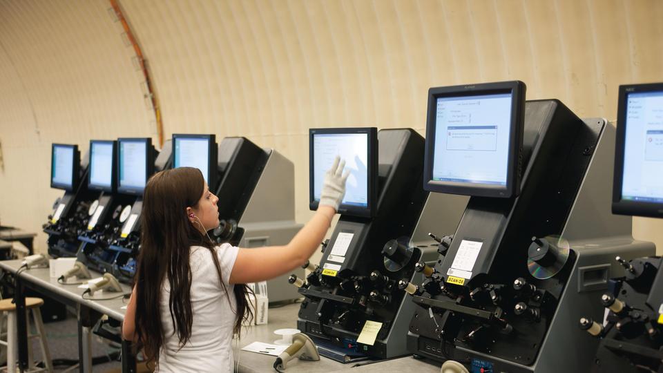 O técnico prepara o enquadramento e começa a disparar.