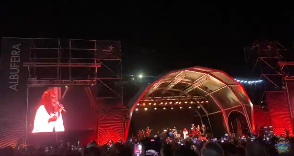 Entusiasmei-me. Não é todos os dias que vemos em carne e osso alguém cujas canções nos acompanham desde que nos lembramos de ser gente. A caminho da Praia do Pescadores, as ruas eram ribeiras de gente que escorria feliz em direção à diva. Lá em baixo, milhares de turistas esperavam pacientemente. Cantava-se. Conferiam-se conhecimentos ⎼ Lembras-te desta ….? E daquela …? – Para a maioria seria a primeira e a última oportunidade de ver a grande estrela da Disco ao vivo.