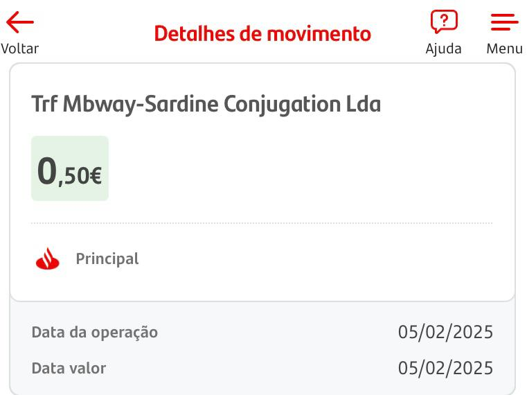 Comprovativo de envio de 50 cêntimos para o PÁGINA UM através de MBWAY a partir da conta da Sardine Conjugation, Lda., detida maioritariamente por José Gabriel Quaresma.