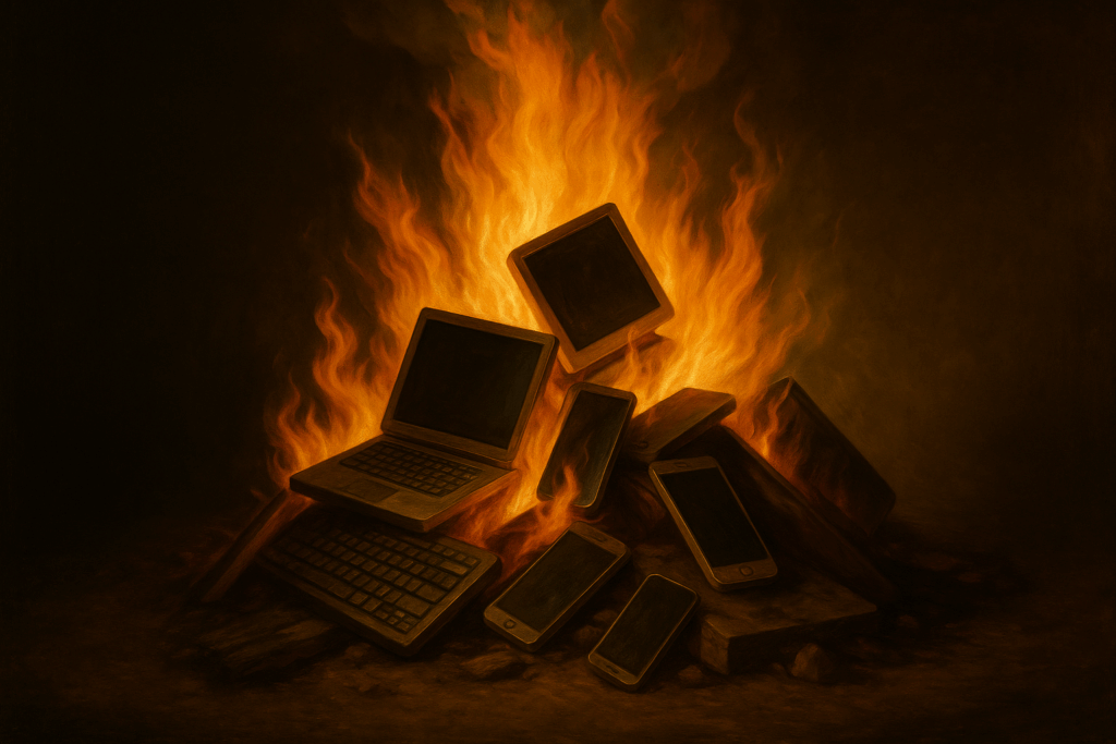 A frase de Sousa Tavares é bíblica na ambição, mas doméstica na substância. Fala como se o Apocalipse estivesse aí e fosse obra de um programador de Silicon Valley, e o pecado original se chamasse scroll infinito. Para ele, o novo Lúcifer, em versão digital, é uma tríade formada por Mark Zuckerberg, Elon Musk e Donald Trump; e a maçã — símbolo eterno da perdição — é agora o smartphone, entronizado como ex machina diabolica, devoradora de dez horas diárias de dispersão e desatenção, que, em vez de cultivar o espírito, promove a ignorância. E também o insulto.