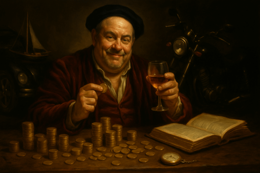 Fortunato nunca duvidara de si próprio. Sabia que tinha nascido para ser rico. Era uma vocação. Um talento que a falta de liquidez o impedia de demonstrar. Chegara a sua oportunidade. Multiplicaram-se os brinquedos – carros desportivos, motas de alta cilindrada, barcos, relógios extravagantes – almoços demorados, jantares principescos regados com vinhos escolhidos a dedo. A mesa cresceu. A cada dia surgiam novos amigos. Pessoas que finalmente tinham tido a oportunidade de perceber o seu requinte, os seus atributos ofuscados pela falta de recursos. Não havia médico, advogado, juiz ou comerciante de prestígio que ousasse faltar: todos corriam a sentar-se à mesa do ilustre anfitrião.