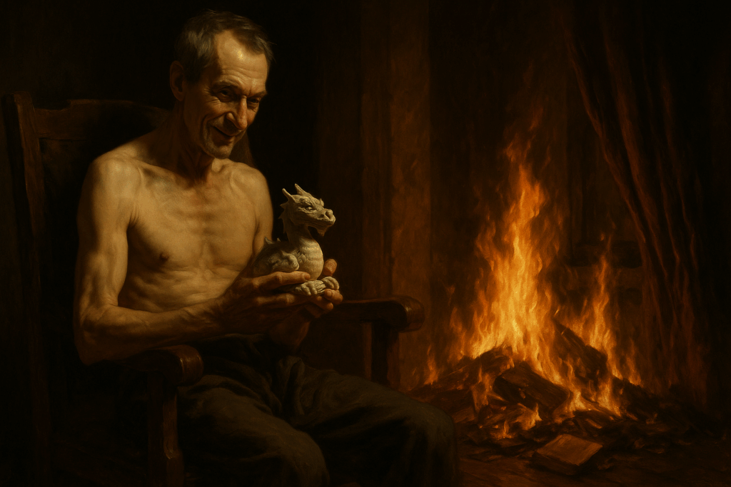 Exausto, voltou a sentar-se na poltrona abraçado ao dragãozinho branco.