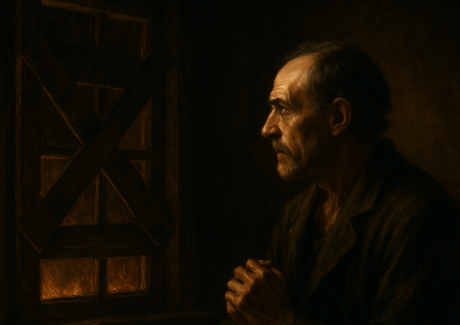 Encurvado, tateando as paredes, avançou para dentro da escuridão sufocante. Tropeçou, praguejou e riscou alguns fósforos até chegar ao quartinho.