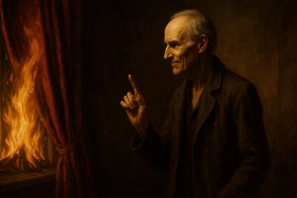 Imóvel, o homem magro observou o altear das chamas que logo galgaram, famintas, as cortinas de veludo.