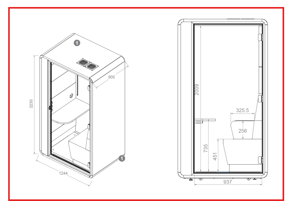 Nada foi esquecido no detalhe. Por exemplo, a cabine acústica ‘hybrid’ com suporte deverá vir equipada com as seguintes características: “painéis interiores estofados em tecidos tipo ‘WOOL’; faixas de iluminação facial adicionais com intensidade ajustável; redução do nível de voz a 26,4 décibeis para assegurar a privacidade das conversas; sistema de ventilação automática e iluminação LED para máximo conforto; rodas integradas para facilitar o transporte da cabina transporte”.