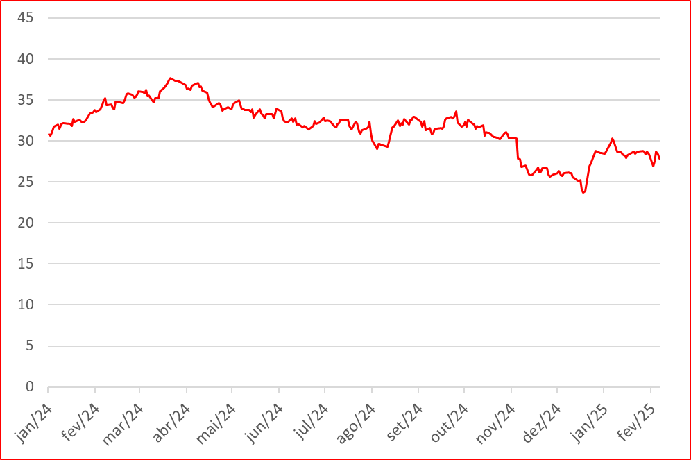 Mínimo:19 de Dezembro de 2024, com 23,70.