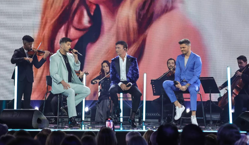 Tony Carreira e os dois filhos (Mickael e David) durante o espectáculo da 2ª edição da Gala dos Sonhos, que constitui uma fonte de receitas volumosa.