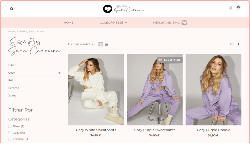 Certo é que, consultando o site da Associação Sara Carreira, observa-se uma forte componente comercial, com uma ligação directa para uma loja de merchandising e para o catálogo de roupa Éssê by Sara Carreira, que a malograda artista lançara em Outubro de 2021.