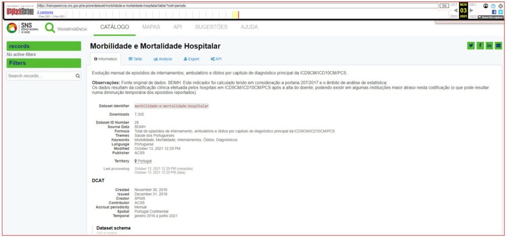 A alegação da ACSS é, contudo, falsa. Na verdade, esta entidade – que gere cerca de seis dezenas de entre as 150 base de dados do Portal da Transparência do SNS – apenas retirou a informação da morbilidade e mortalidade hospitalar do sistema.