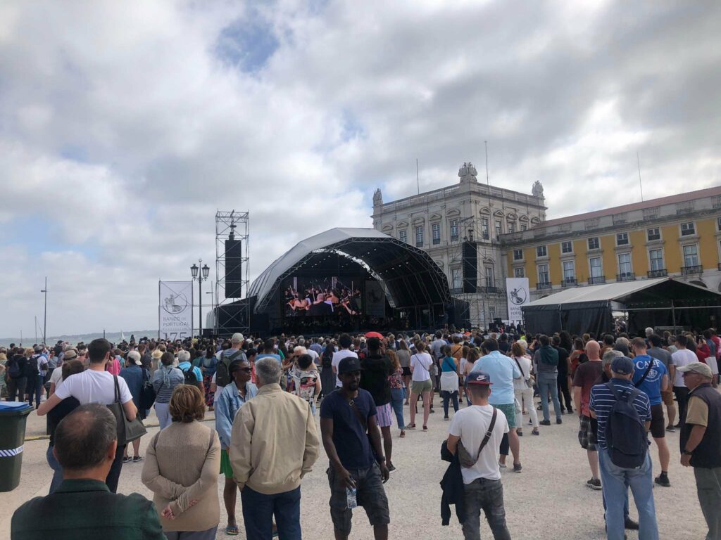 Ao ar livre, numa tarde primaveril, em frente ao Tejo – mais precisamente, no majestático Terreiro do Paço, símbolo histórico do comércio e do poder.