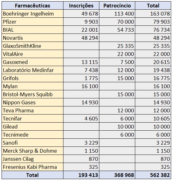 No total, para os especialistas do extinto Gabinete de Crise da Ordem dos Médicos, todos muito próximos de Miguel Guimarães, a Merck Sharp & Dohme – que perdeu a “corrida para as vacinas”, mas tinha grandes esperanças em comercializar um anti-viral contra a covid-19 (o molnupiravir) – foi a farmacêutica com mais apoios (41.298 euros), seguindo-se a Gilead – interessada no negócio do remdesivir, com 29.902 euros – e a Sanofi (27.429 euros), que acabou também por beneficiar indirectamente com a pandemia, porquanto, mesmo com o “desaparecimento” da gripe aumentou as vendas da vacina quadrivalente contra o vírus influenza. A Pfizer e a AstraZeneca gastaram 25.064 e 12.104 euros, respectivamente.
