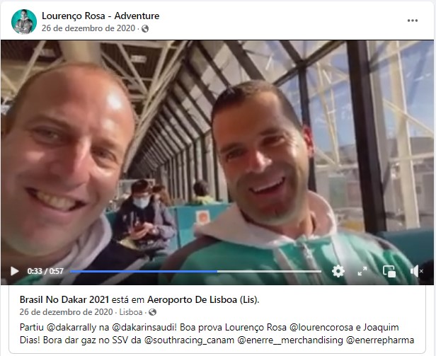 Lourenço Rosa, com o seu navegador Joaquim, ambos sem máscara, no aeroporto de Lisboa, de partida para o Rally Dakar de 2021