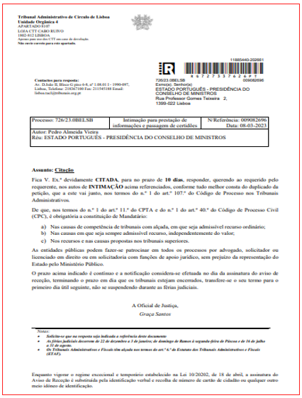 N.D. Todos os encargos do PÁGINA UM nos processos administrativos, incluindo taxas de justiça e honorários de advogado, têm sido suportados pelos leitores e apoiantes, através do FUNDO JURÍDICO. O PÁGINA UM considera que os processos, quer sejam favoráveis quer desfavoráveis, servem de barómetro à Democracia (e à transparência da Administração Pública) e ao cabal acesso à informação pelos cidadãos, em geral, e pelos jornalistas em particular, atendíveis os direitos expressamente consagrados na Constituição e na Lei da Imprensa.