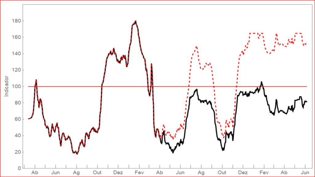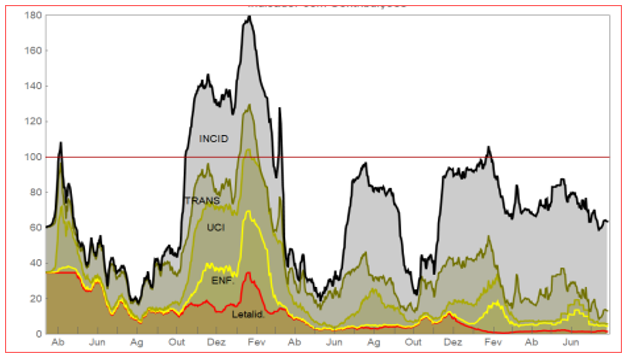 Contudo, ao invés de se observar qualquer aumento do número de casos positivos ao longo de Junho – e em especial a partir da segunda semana desse mês –, verificou-se sim um forte decréscimo em plena época festiva sem qualquer uso de medidas não-farmacológicas, como seja as máscaras. Com efeito, entre 6 e 30 de Junho foram contabilizados 303.364 novos casos em todo o país e para todas as circunstâncias, ou seja, uma média diária de 12,6 mil casos.