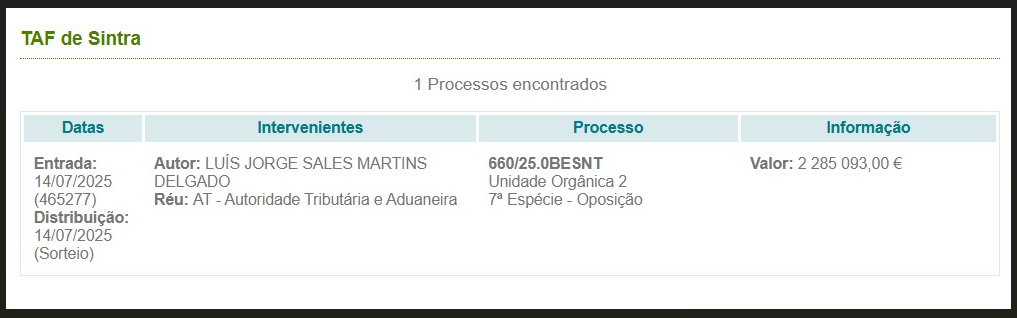 Ontem, segundo apurou o PÁGINA UM, Delgado avançou uma acção de oposição junto do Tribunal Administrativo e Fiscal de Sintra para tentar travar uma nova acção de execução referente a uma dívida fiscal de 2.285.093 euros da TIN.
