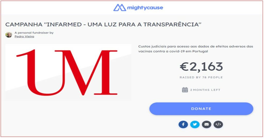 Os apoios podem ser encaminhados directamente para a plataforna de angariação no MightyCause denominada “INFARMED – UMA LUZ PARA A TRANSPARÊNCIA” com o objectivo específico de suportar custos de patrocínio jurídico e demais despesas correlacionadas.