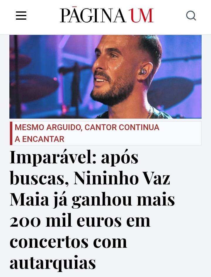 Percebi que há quem pense que não podemos escrever sobre Nininho Vaz Maia, mesmo que seja para noticiar que o artista continua popular entre autarcas e é muito requisitado, após a polémica.