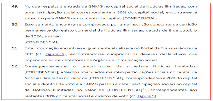 Exemplo flagrante da falta de transparência da ERC: na autorização do estranho negócio da transmissão / venda de títulos da Global Media à Notícias Ilimitadas aspectos essenciais são escondidos com a palavra CONFIDENCIAL. O Tribunal Administrativo de Lisboa determinou que todos esses elementos deveriam ser acedidos pelo PÁGINA UM, mas a ERC recorreu para a instância superior, mostrando ser adepta do obscurantismo em negócios de media pouco claros.