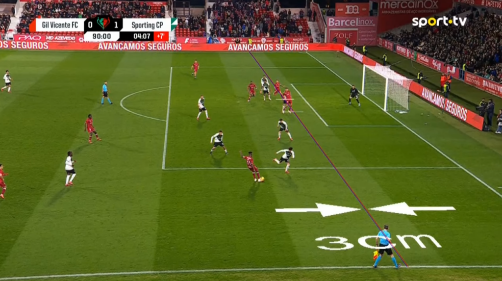 Pela segunda vez em poucos meses, o Sporting esteve envolvido em dois foras-dejogo por três centímetros, detectado com o rigor de um cirurgião oftalmologista a operar num sismo. Primeiro, em finais de Fevereiro, saiu beneficiado por um golo invalidado ao Gil Vicente ao minuto 88, que daria o empate numa elimimnatória da Taça de Portugal. Na passada segunda feira, saiu-lhe a fava contra o Braga, com um golo invalidado ao avançado Gyokeres por um milímetro fora de-jogo de três centímetros.