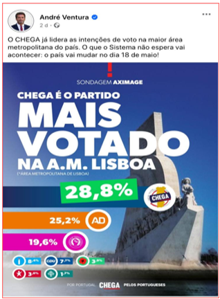 Com uma margem de erro superior a 9%, os três partidos principais — CHEGA, AD e PS — estão tecnicamente empatados. No entanto, o jornal, omitindo este dado essencial, converteu uma incerteza estatística numa certeza política, sendo aproveitada por André Ventura e os seus correligionários para fazerem propaganda. Uma sondagem política não pode ser usada desta forma – nem deveria ser permitido que um órgão de comunicação social detido por um partido a pudesse encomendar e divulgar.