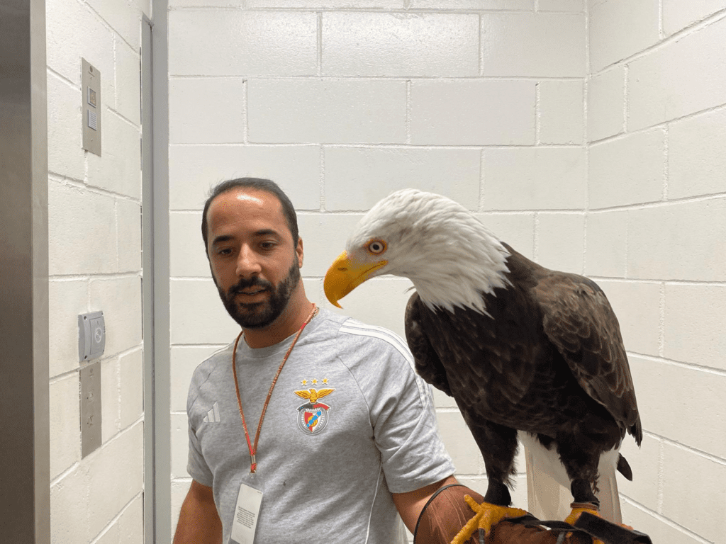 Porém, dizei-me, cépticos, incréus e demais descrentes: como ignorar, ao fim de 24 anos de sócio, que a águia Vitória (acho que, na verdade, era a Gloriosa) finalmente se cruza comigo? Isto é, a menos de um metro: eu a subir o elevador para a Varanda da Luz; ela, com o tratador, a sair do relvado… É certo que ela me pareceu um pouco alheia à minha presença, enquanto subíamos, e eu entabulava uma curta conversa com o seu tratador, sobre o desempenho (eventualmente) distinto das duas águias, mas, enfim, nem sempre os momentos históricos são apercebíveis por águias nem tão solenes como os do Anjo Gabriel e a Virgem Maria.