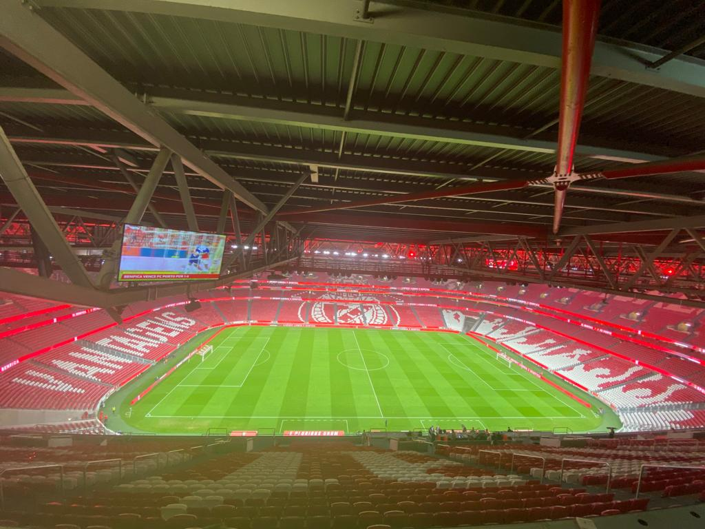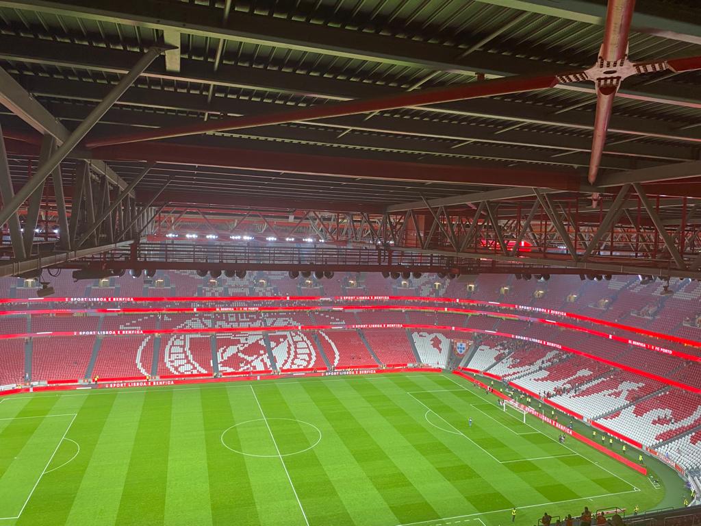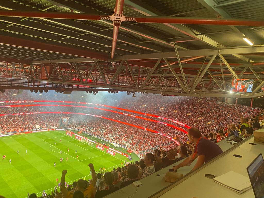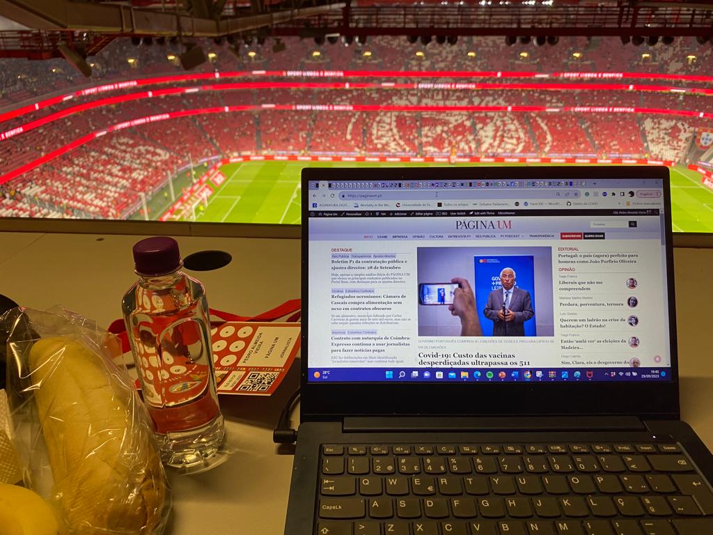 (já agora, sobre os meus colegas de varanda de hoje, isto é, os da bancada de imprensa, tudo muito calmo e contido. E o Benfica a começar a perder oportunidades, agora mesmo foi o Otamendi a rematar para fora sem oposição, às tantas a recordar-se dos cortes defensivos quando estava no Porto; e antes disso, o Diogo Costa a fazer uma excelente mancha a remate subtil de Neres)