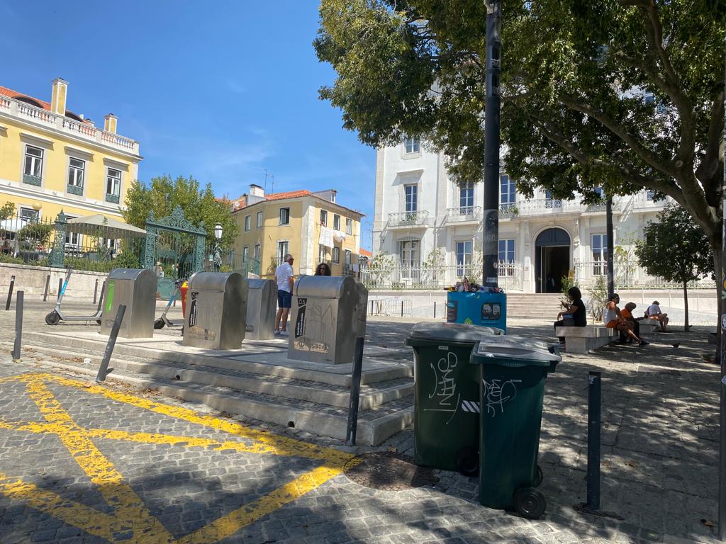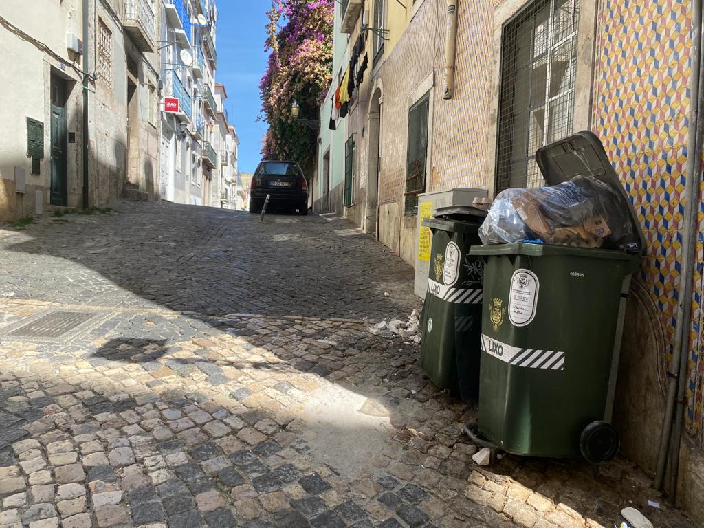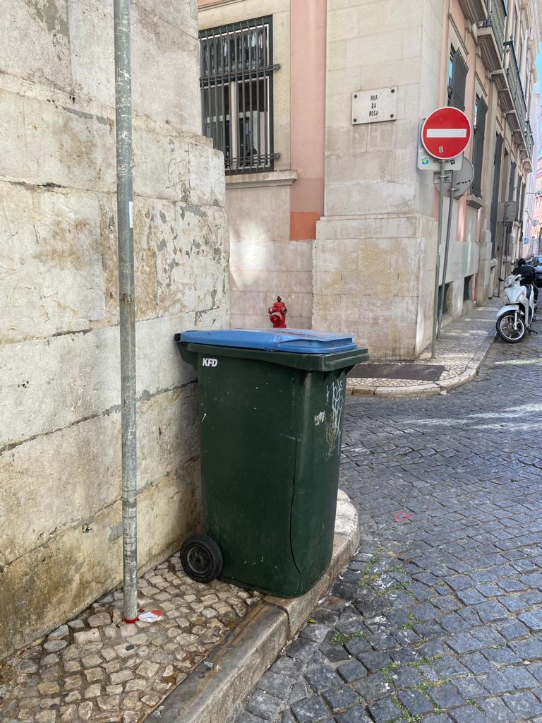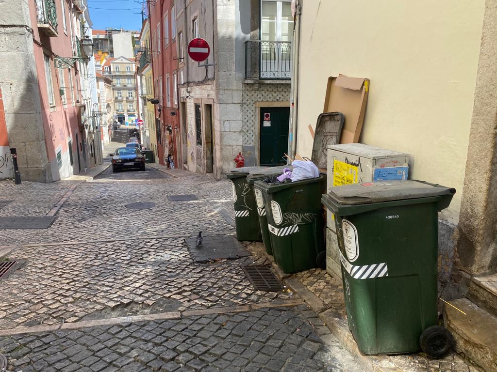 E assim, cá temos, todos têm, as ruas de Lisboa com contentores verdes.