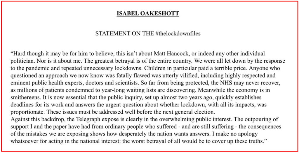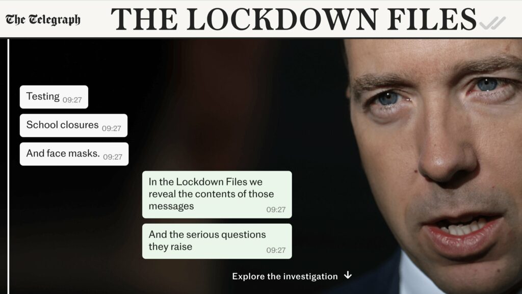 O jornal The Telegraph teve acesso a mais de 100.000 mensagens de WhatsApp do ex-ministro da Saúde britânico Matt Hancock. É uma das maiores fugas de dados oficiais do país. As revelações do jornal geraram um escândalo de enormes proporções ao expor os bastidores das tomadas de decisão do governo de Boris Johnson na pandemia de covid-19. O que as mensagens revelam é que o Executivo britânico tomou medidas que não estavam fundamentadas na evidência científica e nos dados disponíveis. Além disso, fica demonstrado que o governo trabalhou com órgãos de comunicação social para alarmar a população. Entretanto, a jornalista que divulgou os chamados “Lockdown Files”, e que foi co-autora da biografia de Hancock, publicou uma declaração em resposta a acusações de “traição” por parte do antigo governante e diz que foi ameaçada por Hancock após a publicação das mensagens.