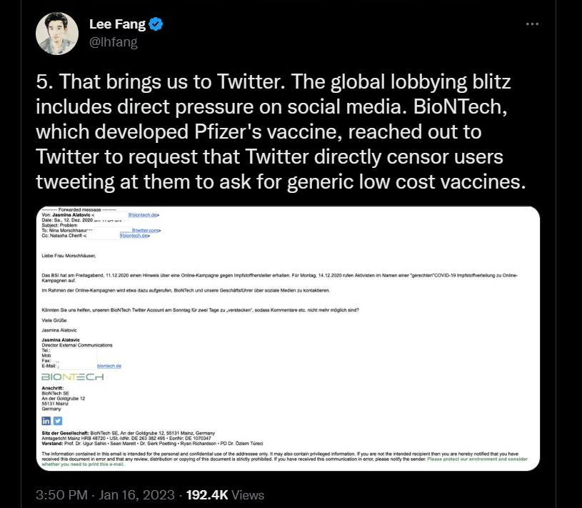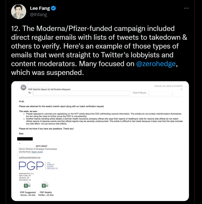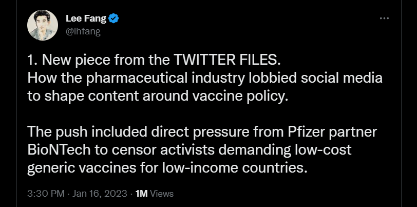 Antes destas informações hoje tornadas públicas por Fang, o jornalista independente Matt Taibbi também revelou recentemente documentos e dados que comprovam a pressão feita pelo Partido Democrata sobre o Twitter para que corroborasse a sua tese sobre uma alegada interferência russa nas eleições presidenciais nos Estados Unidos. A recém-divulgada súmula de documentos divulgados por Taibbi é mais uma “machadada” na narrativa de uma tentativa de manipulação eleitoral por parte do Kremlin.