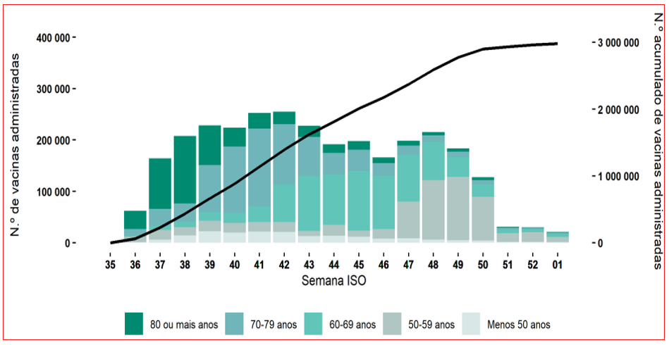 No total, nem sequer chegaram às 100 mil doses administradas em três semanas, confirmando-se assim a fraca adesão do grupo etário dos 50 aos 59 anos, cuja campanha se iniciara em 10 de Novembro passado, após um período de vacinação dos mais idosos iniciado em Setembro.
