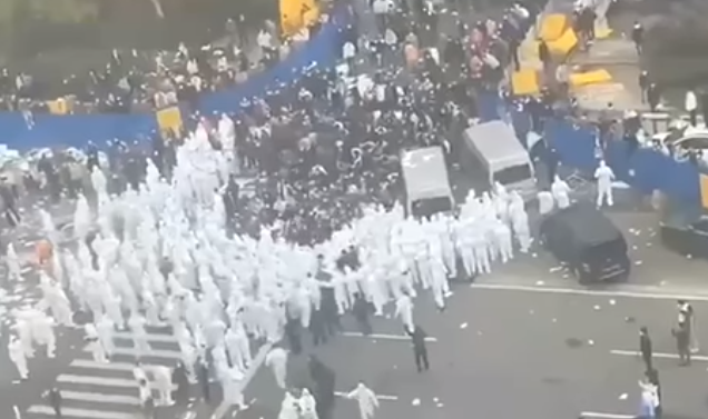 Continuemos com a notícia da AP que nos revela que “a polícia de Xangai usou spray de gás-pimenta contra cerca de 300 manifestantes, segundo uma testemunha”. A notícia acrescenta ainda: “Vídeos publicados nas redes sociais que dizem ter sido filmados em Nanjing, no leste, e em Guangzhou, no sul, e pelo menos cinco outras cidades, mostraram manifestantes a lutar contra a polícia vestida com fatos de proteção brancos ou a desmantelar barricadas usadas para selar bairros”.