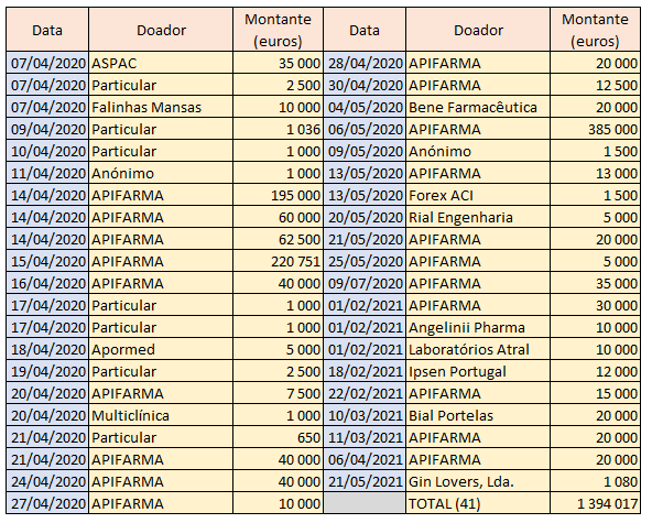 Não sendo essa a questão – o mérito, em teoria, de uma campanha de solidariedade –, acrescente-se também que a Ordem dos Médicos e a Ordem dos Farmacêuticos, através de representante legal, ainda não esclareceu formalmente o PÁGINA UM sobre os motivos para não ter sido aberta uma conta institucional para recolher os donativos quer das farmacêuticas quer de outras empresas, em geral, e de particulares.