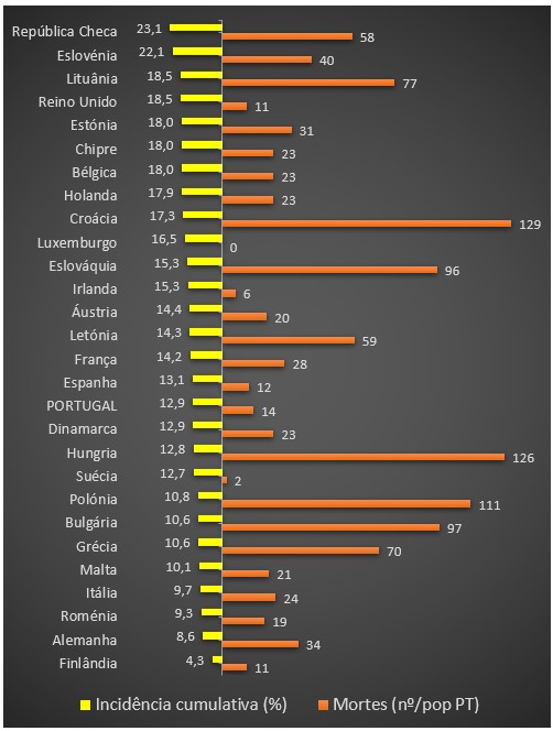 Com efeito, face à menor letalidade da covid-19 nesta fase pandémica, à contínua ausência de actividade dos vírus influenza (causador das gripes) e à menor prevalência de outras infecções respiratórias, o período invernal em curso apresenta mortalidade total por todas as causas 6% inferior à média. Esta redução será maior se indexada à taxa de mortalidade no grupo etário dos mais idosos, porque são agora muitos mais.