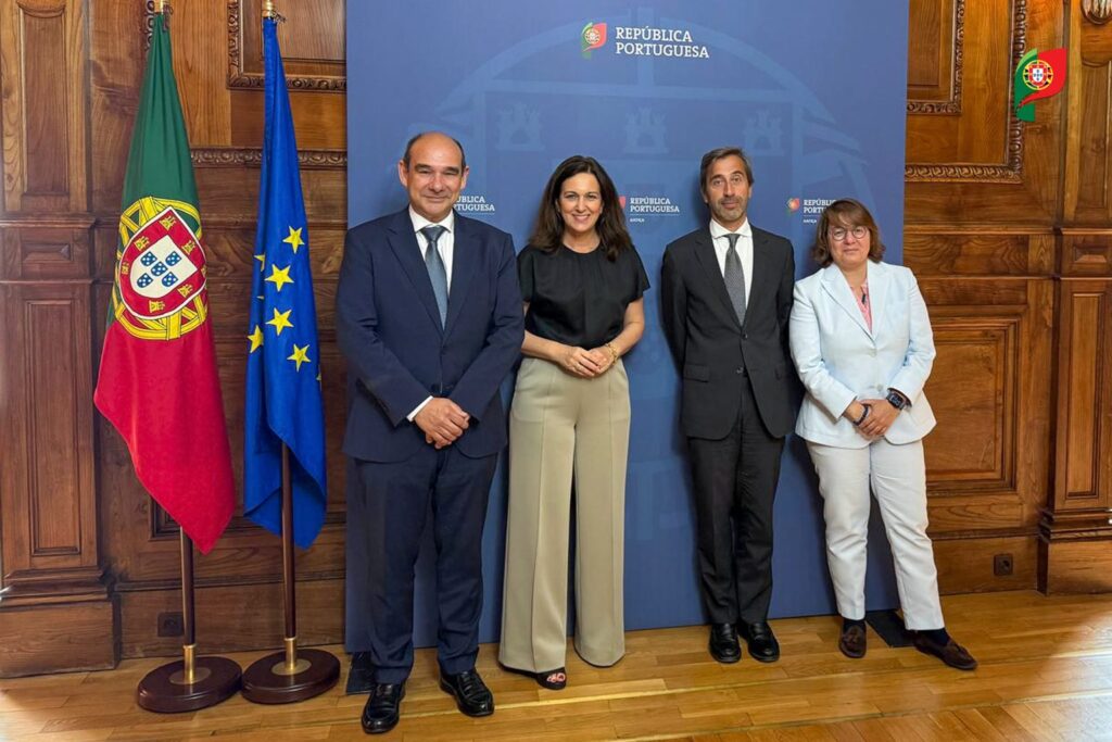 (Da esquerda para a direita) O presidente do STA e do CSTAF, juiz conselheiro Jorge Aragão Seia, a ministra da Justiça, Rita Alarcão Júdice, o secretário de Estado-Adjunto e da Justiça, Gonçalo Cunha Pires, e a juíza-secretária, juíza desembargadora Eliana Almeida Pinto, a qual vai liderar o novo canal JAF TV. / Foto: D.R.