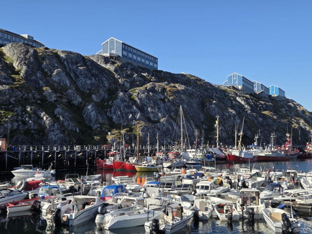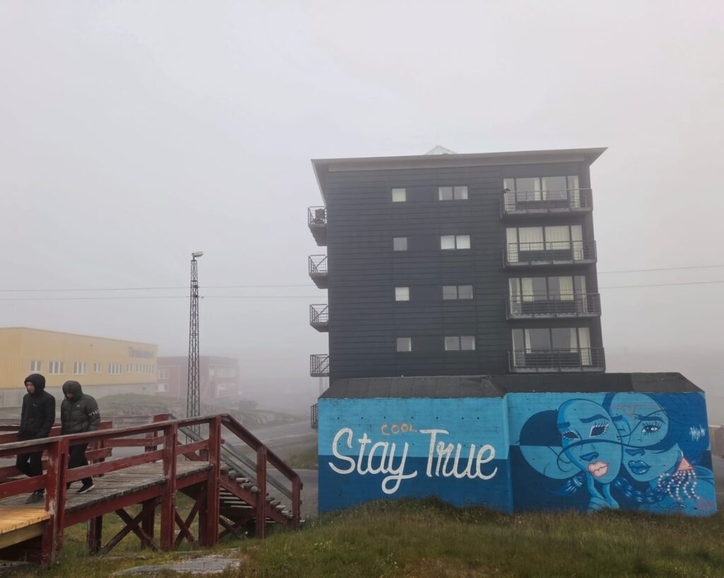 “Só posso sonhar com uma mudança de paradigma”, disse. “Só posso esperar que o turismo sustentável um dia substitua a pesca como principal fonte de rendimento. A pesca está a causar enormes danos ao ambiente, mas também é o foco de grande parte da identidade gronelandesa. Somos cerca de 59.000 a viver aqui numa extensão de terra com pouco mais de um terço dos Estados Unidos. Temos a sorte de habitar uma das últimas áreas intocadas do mundo — ou, melhor, apenas ligeiramente tocadas. Mas também estamos a experienciar a linha da frente das alterações climáticas, e isso só vai piorar. É por isso que precisamos de nos unir e viver da forma mais sustentável possível. O nosso princípio orientador deve ser a solidariedade. No entanto, isto não parece fazer parte do zeitgeist. O modo de vida americano — o caminho que agora nos está a ser imposto — é o mais distante do que realmente precisamos. Tenho a certeza de que vamos ser suficientemente maduros para o rejeitar. Não seremos subornados. Está na nossa natureza explorar o nosso ambiente e apresentá-lo aos outros. Os gronelandeses são guias naturais por … Bem, por natureza! Por aqui, se não tiveres o teu próprio barco, trenó, cães e conhecimentos de caça, estás acabado”.