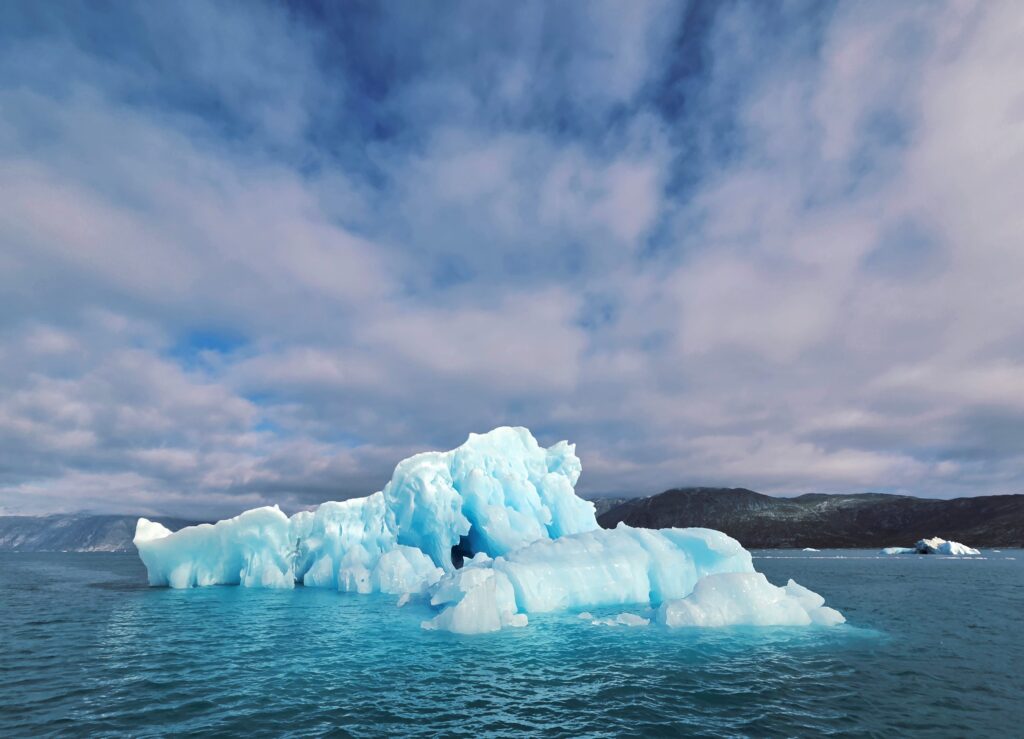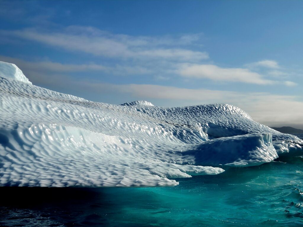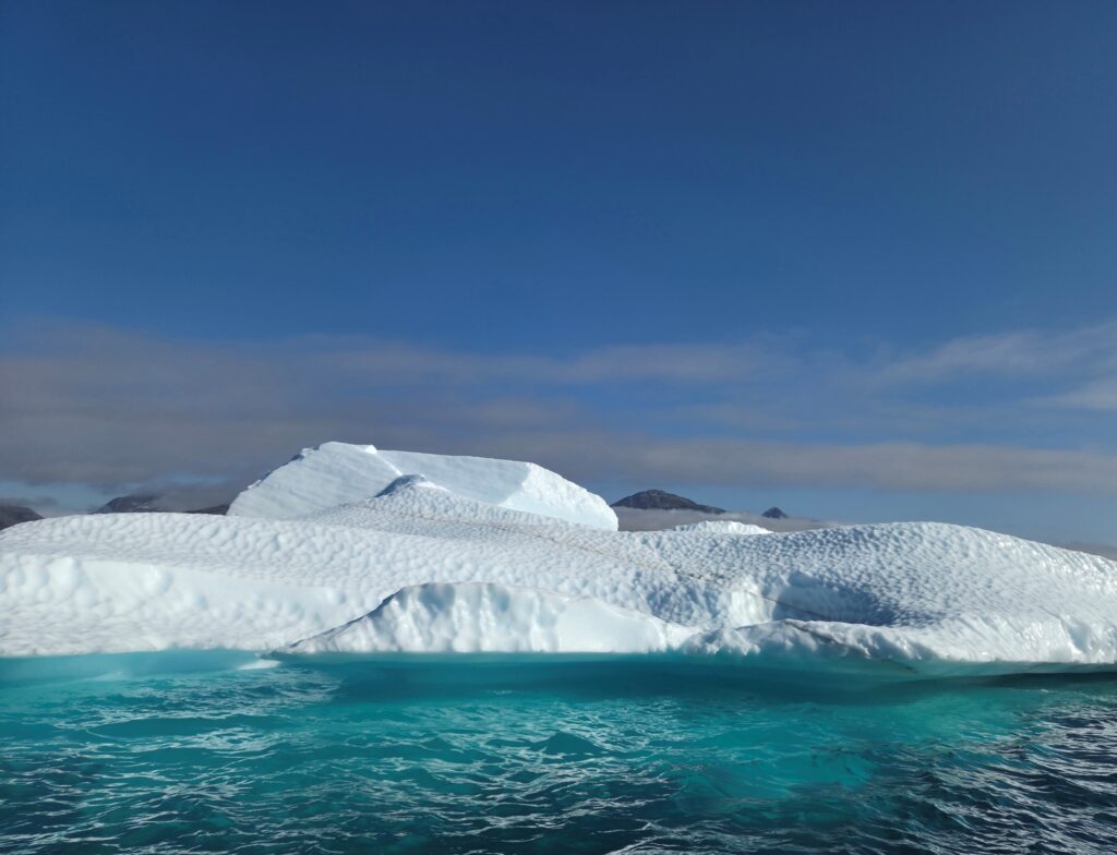 Os inuítes, que representam cerca de 90% da população da Gronelândia, conhecem 80 termos diferentes para gelo. E, de facto, cada iceberg e cada pedaço flutuante de gelo pareciam completamente diferentes. Quanto mais nos aproximávamos dos montes de gelo brilhante flutuantes, mais vivos pareciam. A constante libertação de bolhas de gelo produzia ruídos rítmicos, fazendo parecer que o gelo respirava.
