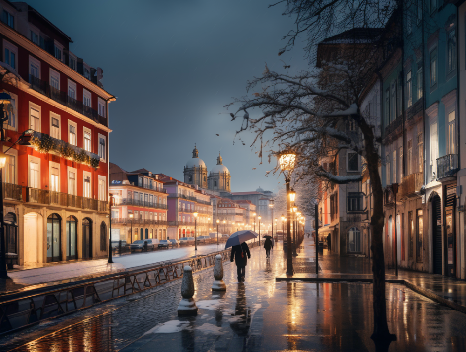 Inverno em Portugal em 2023, imaginado pelo Midjourney.